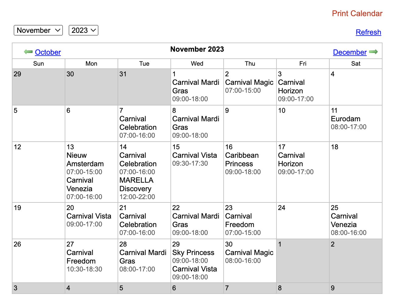 Port Schedules