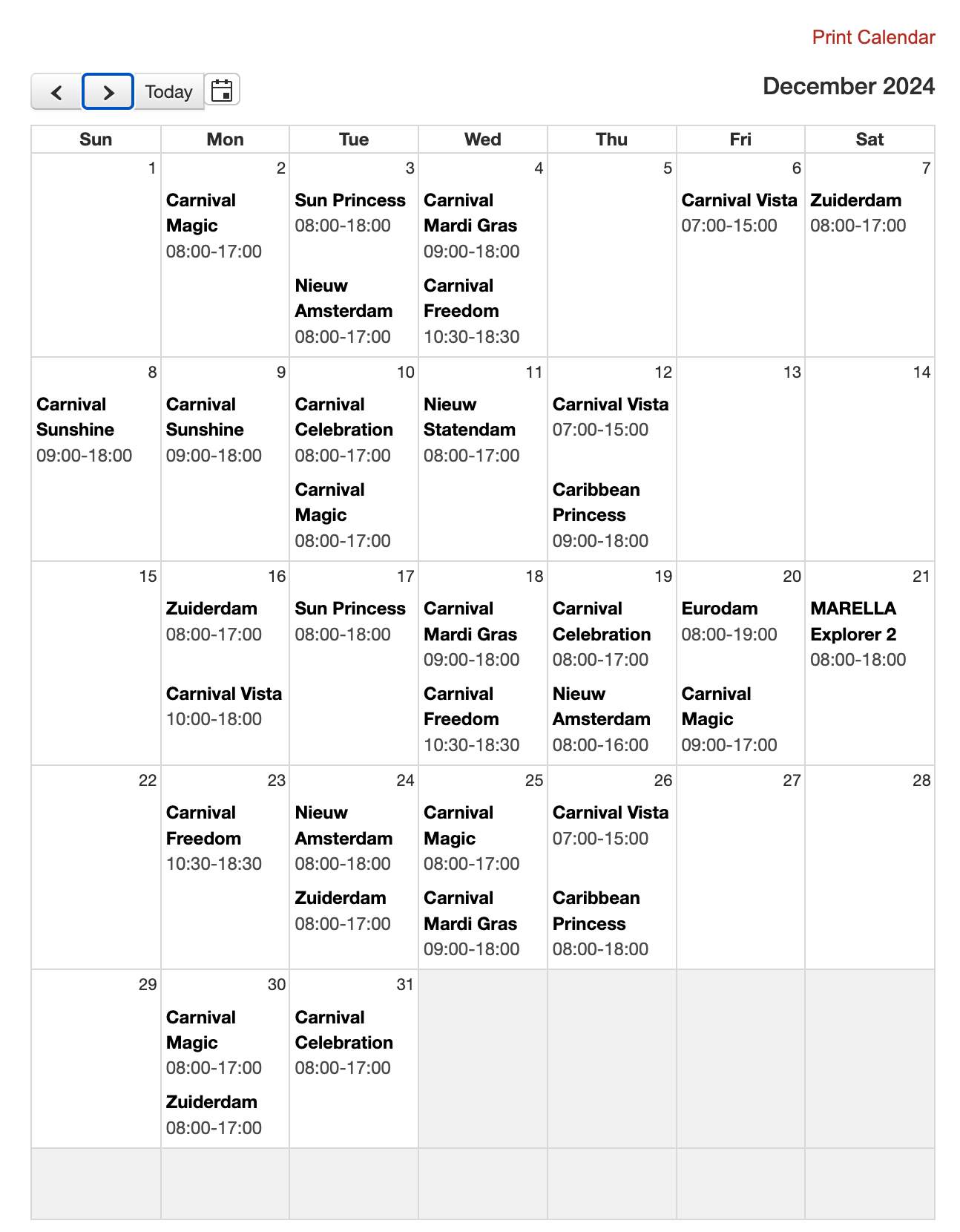 Puerto Plata Cruise Port Schedule
